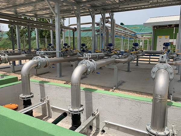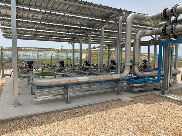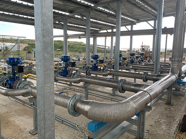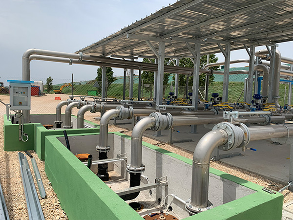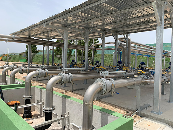 Collettori arrivo Gas Metano da bacini discarica, centrale Sud.