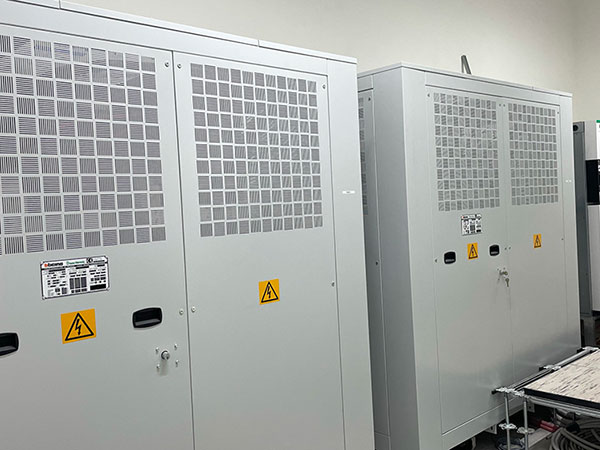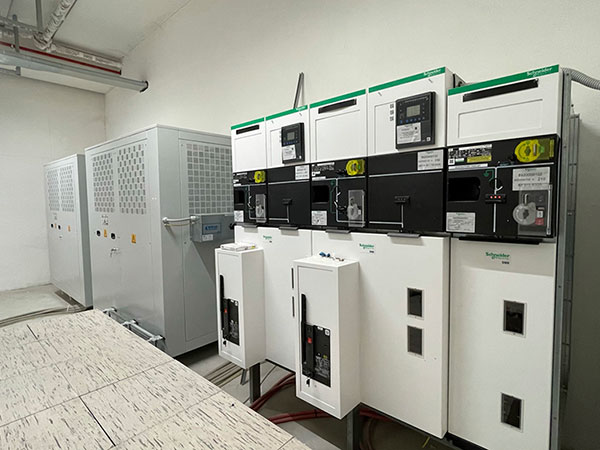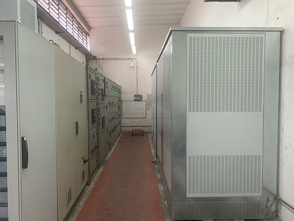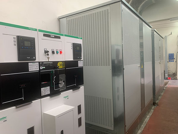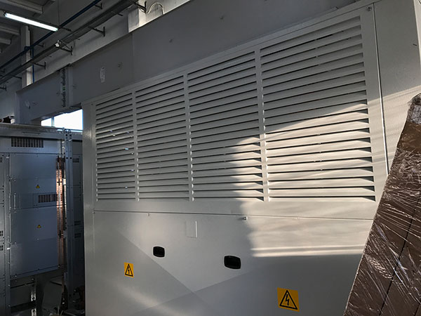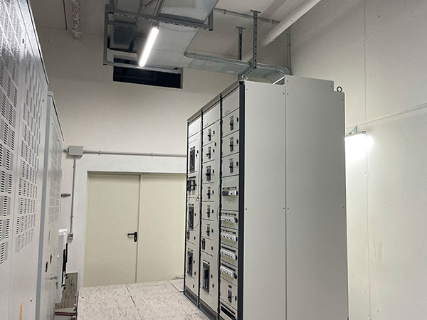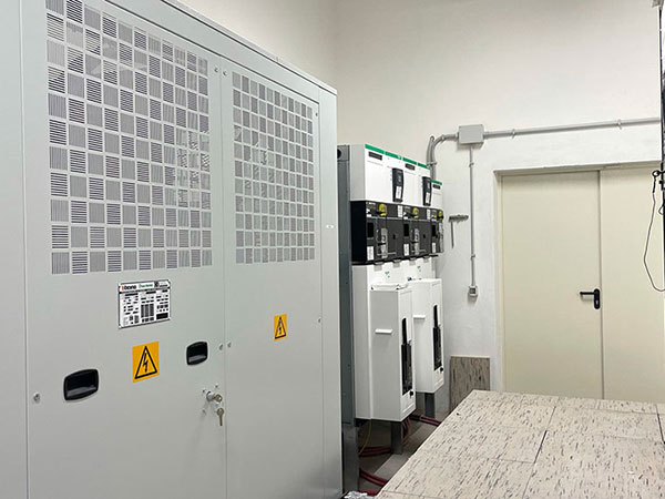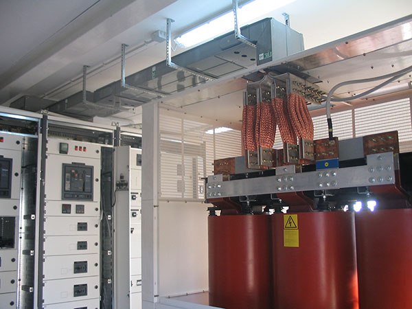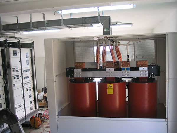 Cabina trasformazione MT/BT al servizio della linea estrusione Pressa P4. Cabina con due trasformatori 20/0.4KV da 2000KVA ognuno.