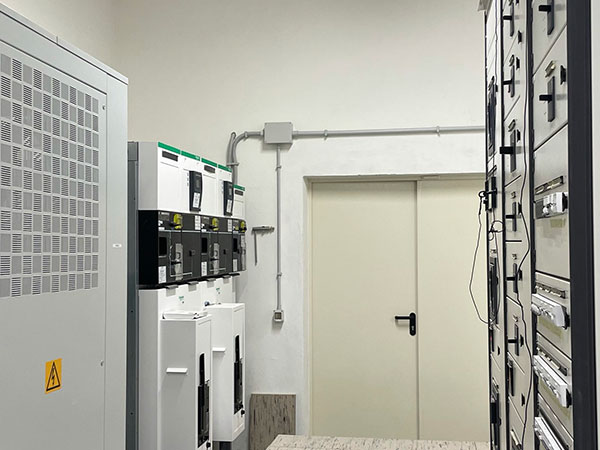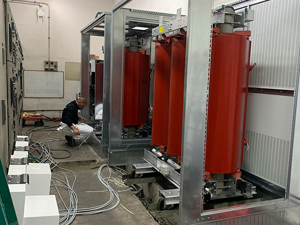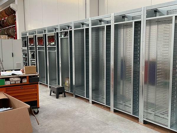 Revamping cabina di trasformazione MT/BT al servizio dell-impianto di estrusione pressa P2 e dei corpi servizi di stabilimento. Cabina con due trasformatori 20/0.4KV da 2000KVA ognuno. Quadro con due sezioni separate da 3200A e congiuntori.